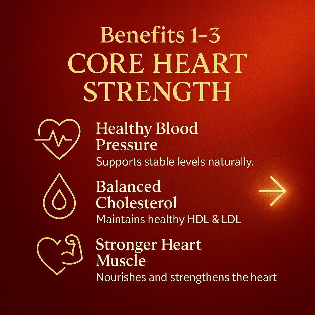Haridyam naturally supports stable blood pressure, balanced cholesterol, and a stronger heart muscle — giving your heart the core strength it needs for long-term health.