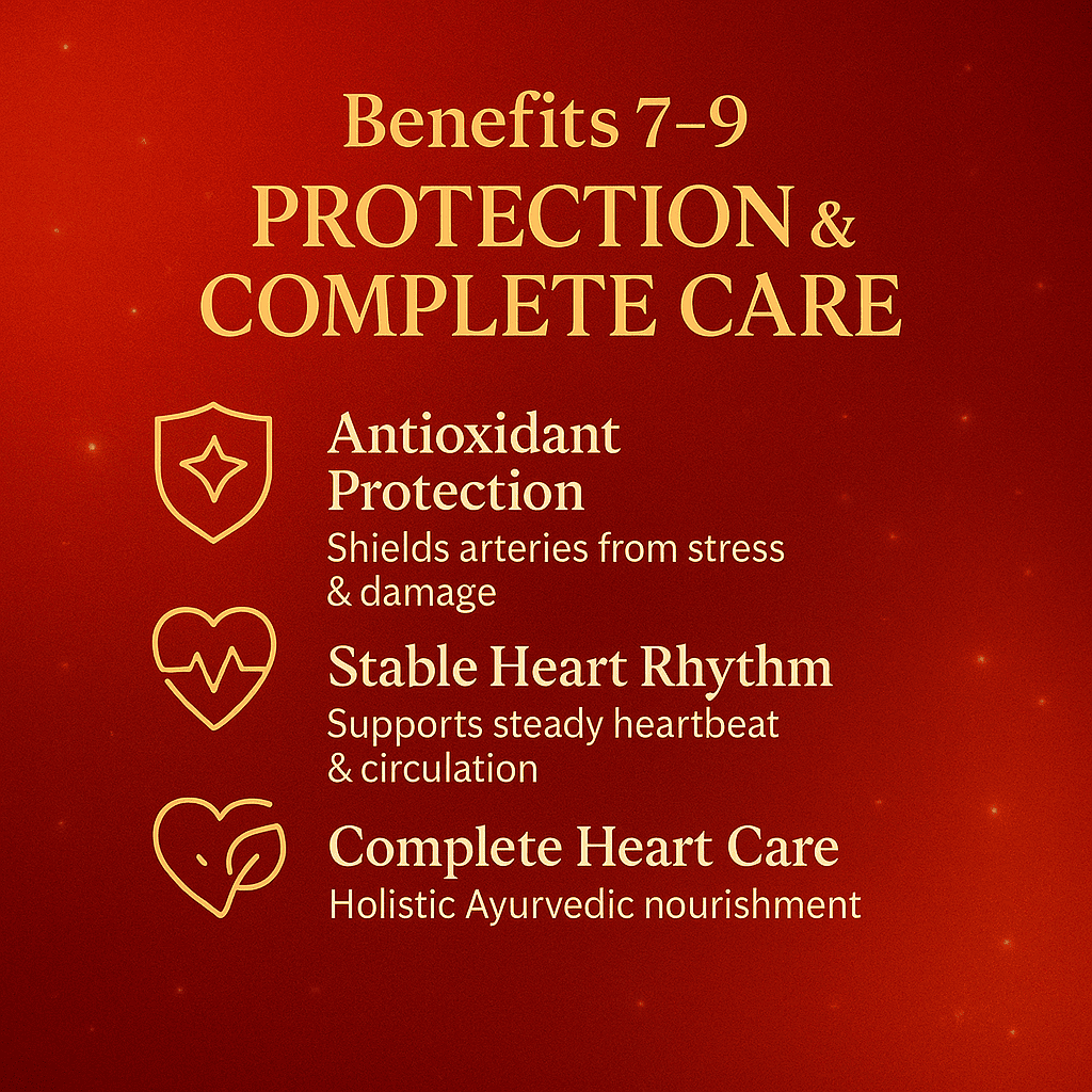 From antioxidant defense to steady heart rhythm and holistic nourishment, Haridyam offers complete Ayurvedic care for a healthy and protected heart