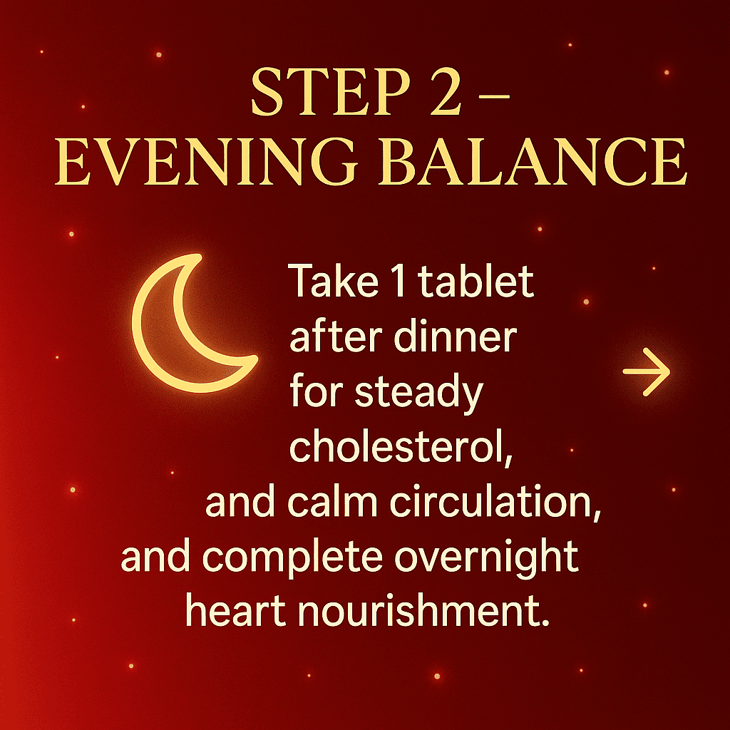 Maintain balance at night — one tablet after dinner supports cholesterol, calmness, and steady circulation